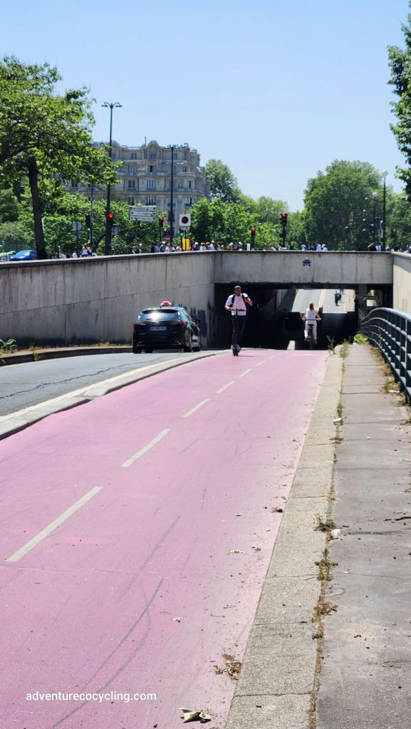 Refueled, I continued along the Seine River, occasionally exiting the path up to street level to check out the various landmarks and active transportation infrastructure. After riding along the north side of the Seine River, I crossed over to the south side, repeating the process.