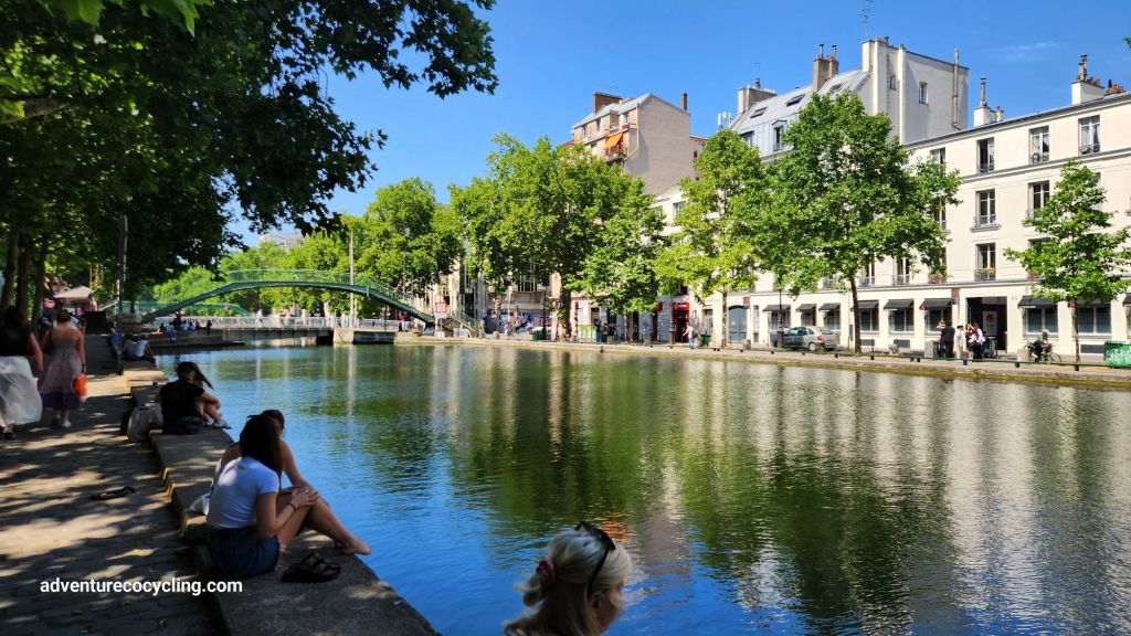 As recommended in the Momemtum magazine article, I left the Seine, winding my way through the city, eventually arriving at Canal Saint-Martin. The area is popular with locals and tourists with many restaurants and bars along the remaining open parts of the canal. While taking a quick break from the bike, I watched locals play Pétanque in the public space along the canal. Pétanque is a boules sport, similar to bocce, in which players or teams play their balls (boules) towards a target ball (cochonnet) with points scored by landing your boules closer to the cochonnet than your opponent’s boules.