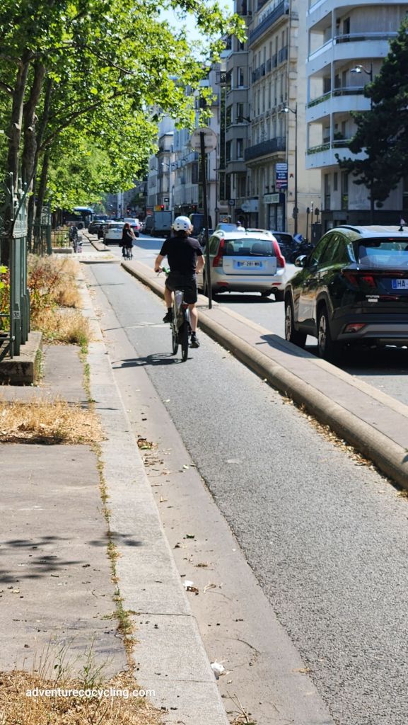 Having visited Paris several times over the last decade or so, I have seen firsthand the great strides the city has made in becoming a world-class cycling city. While on a long planned vacation in France and inspired by the May 2025 Momentum Magazine article Four Great Cycling Routes for a Paris by Bicycle Trip this Spring, I set out on my own to explore Paris and surrounding areas by bicycle. On a borrowed bicycle, on loan from the ever-gracious friends with whom we are staying, the city was open for exploration. In an attempt at a bit of cycling humor, I invited my 17-year-old son to come along for the ride in the kid seat, of course. Acknowledging my attempt at humor, with feigned interest, he declined my offer and wished me a safe and enjoyable ride.